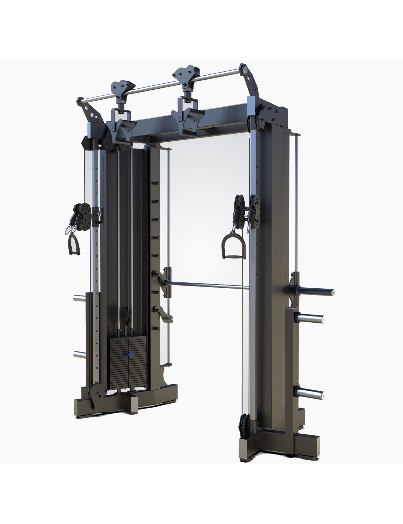 Con la combinación óptima de potencia y versatilidad, la Estación Multiuso Smith/Polea Doble maximiza el rendimiento en cualquier espacio de entrenamiento