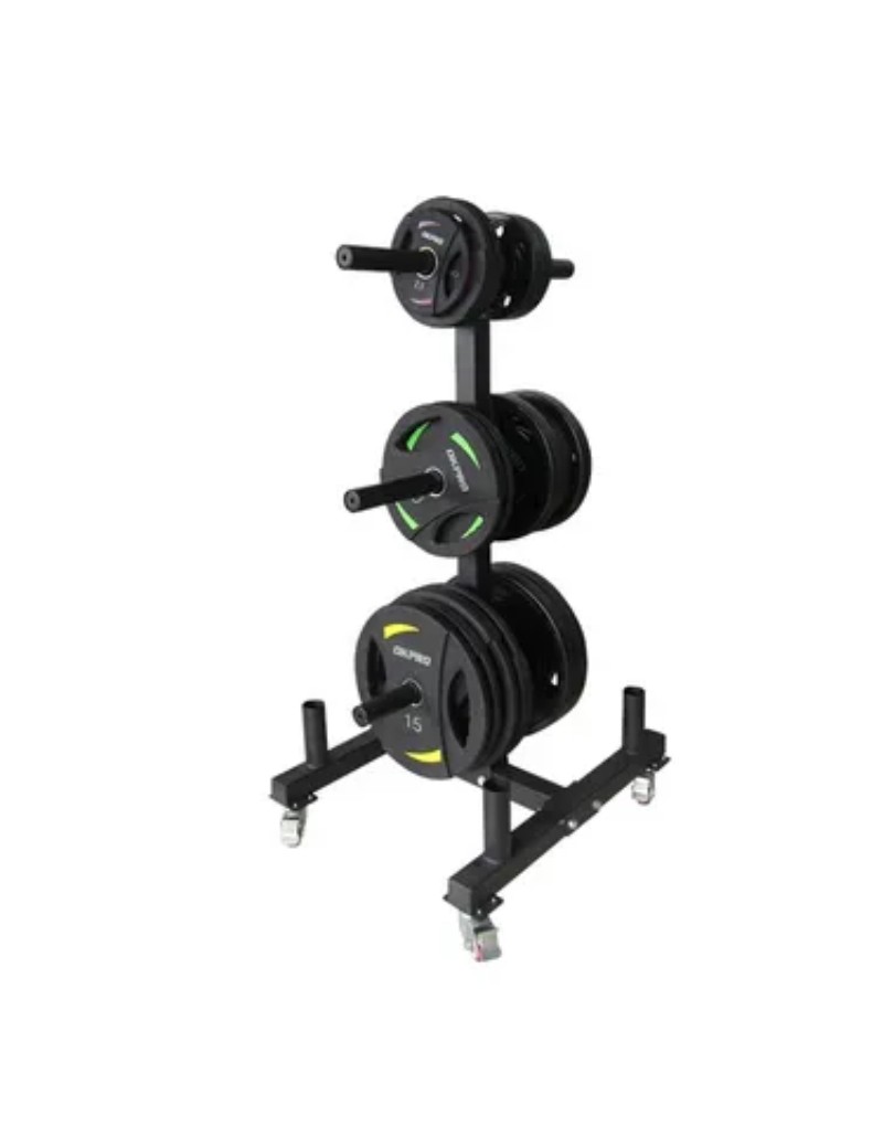 Rack para almacenamiento de discos y barras olímpicas con ruedas de movilización, no incluye discos